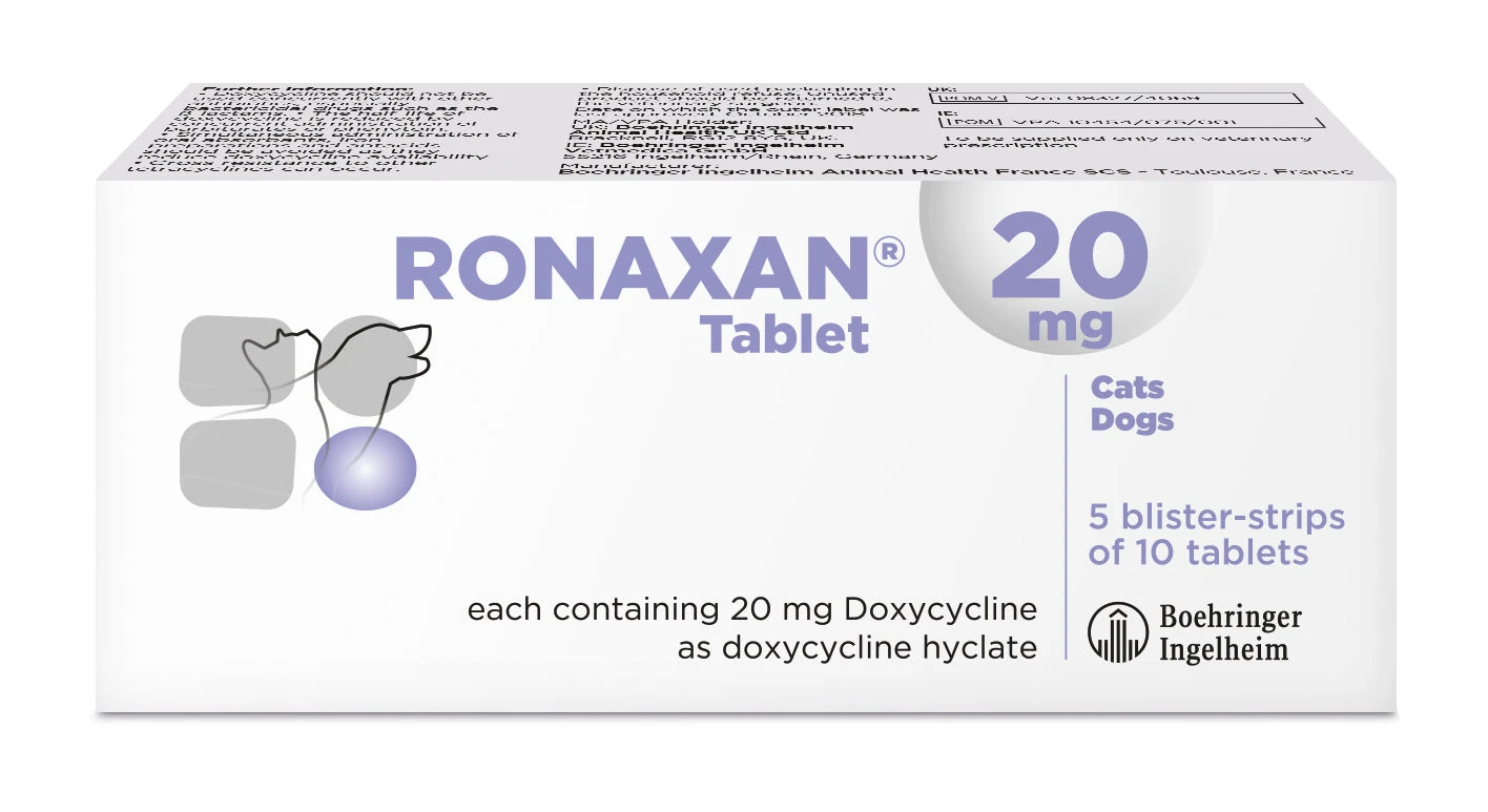 Ronaxan® tablets are also used to treat Ehrlichia canis (a blood infection spread by ticks) in cats and dogs.
