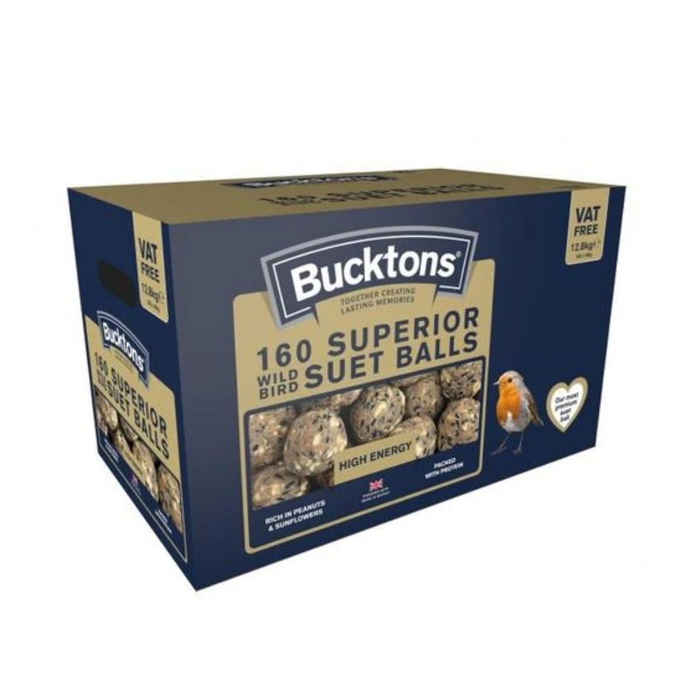 Bucktons 160 Wild Bird Superior Suet Balls are the perfect treat for wild birds. Packed with sunflower seeds and peanuts, each fat ball provides plenty of energy and will entice many a feathered friend to your garden. This great value for money pack of 160 suet balls will keep your feeders full for a while and are packed full of protein to keep the birds coming back for more.