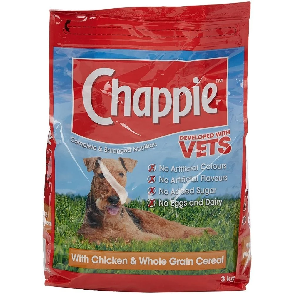 Chappie Vets developed dry dog food with chicken and wholegrain cereal is complete pet food for adult dogs.