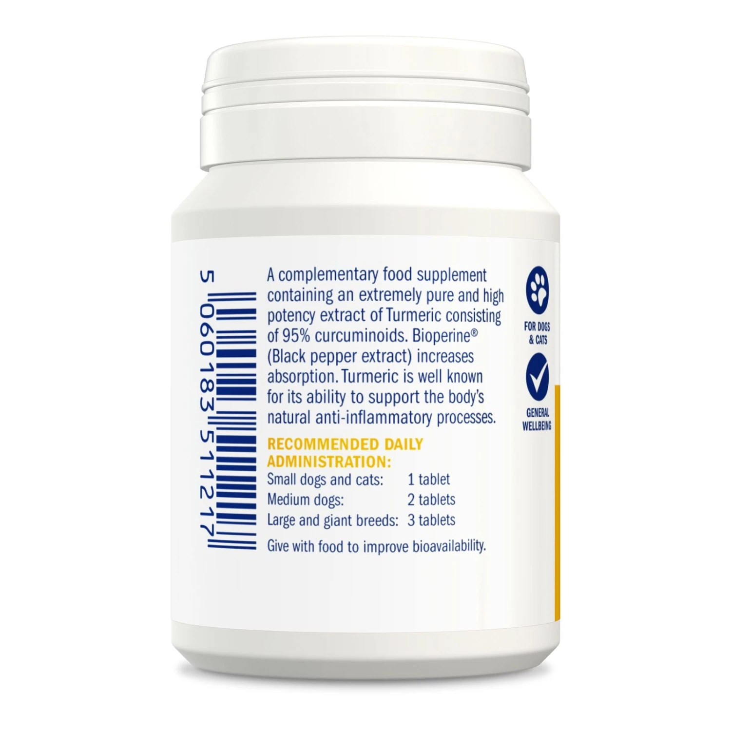 Our specially formulated Turmeric Tablets for dogs and cats are made using a pure and potent extract. Consisting of 95% curcuminoids – the active part of turmeric – they can help support your pet’s natural anti-inflammatory processes. This may be of particular benefit to pets with troublesome joints. Extracted from whole root and with added Bioperine® (black pepper extract) to help boost absorption, you can be sure that our supplement has maximised quality and bioavailability.
