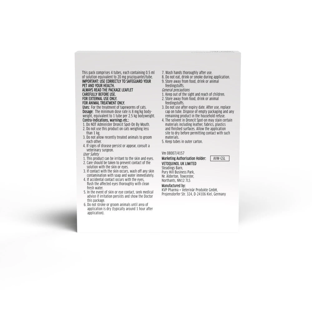 Specifically formulated with cats in mind, Droncit Spot-On Tapewormer targets both immature and mature forms of adult tapeworms in cats