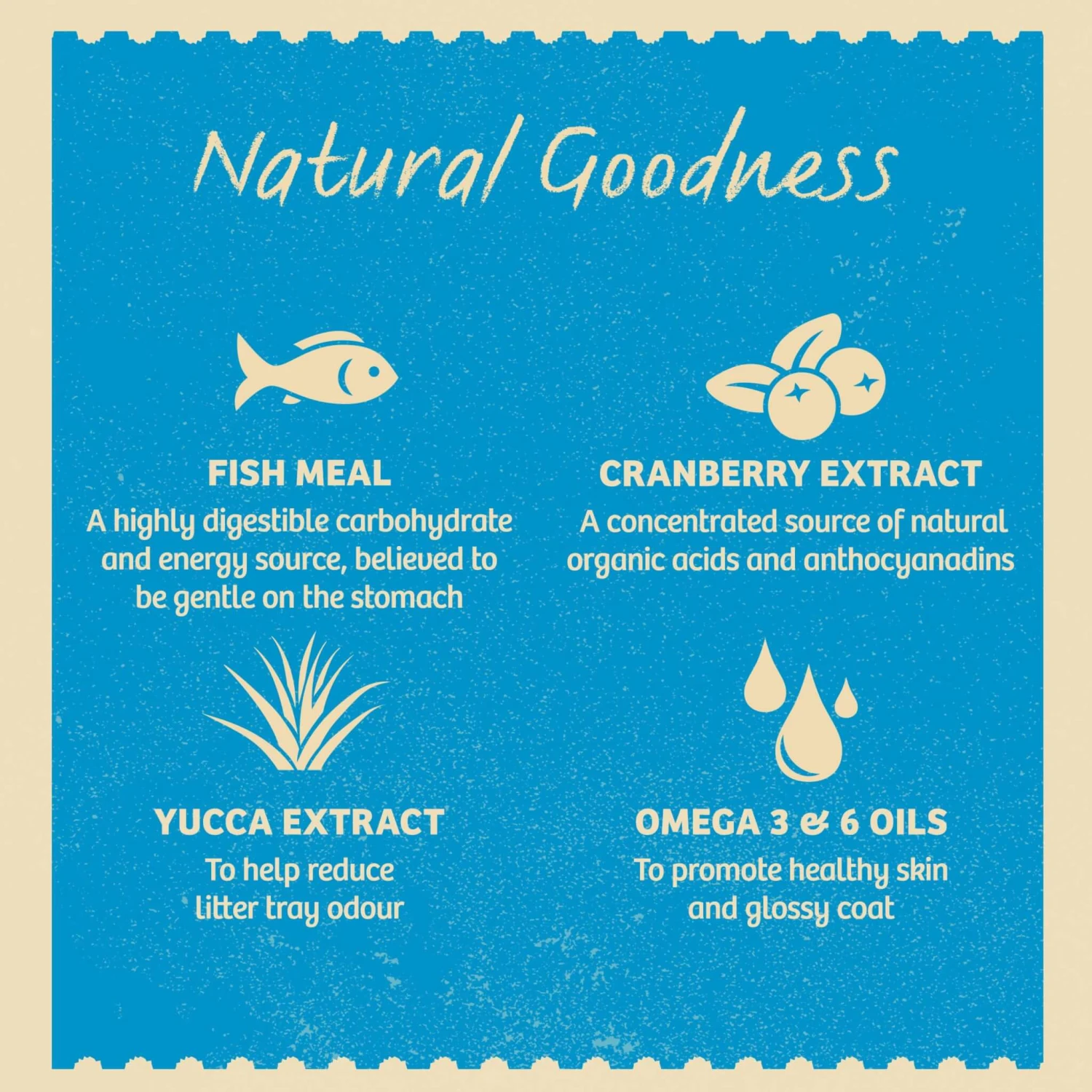 -This delicious fish cat food contains yucca extract to reduce offensive odours- for less smelly poos;