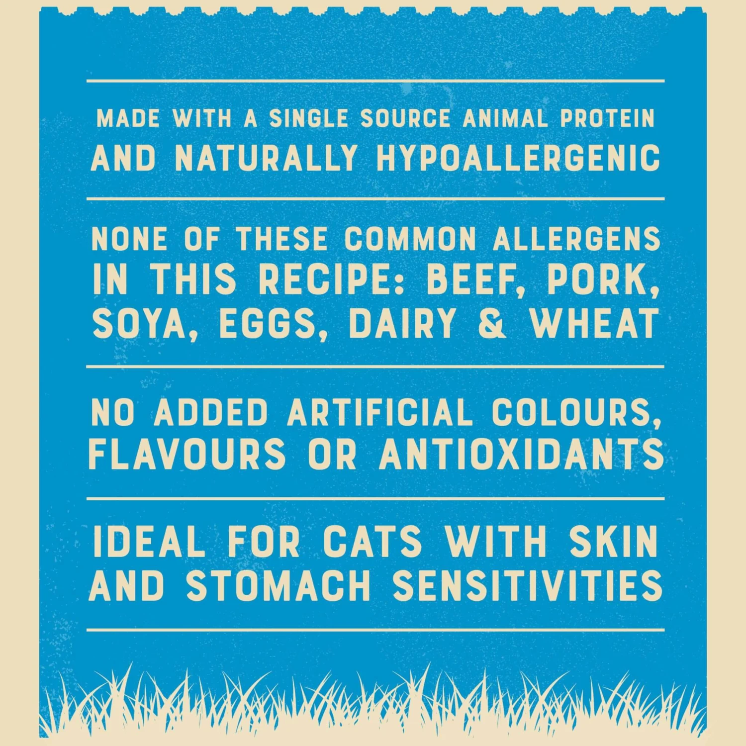 -The complete, hypoallergenic cat food, with a satisfying crunch, contains a balanced amount of functional fibres for a settled tummy and digestive system.