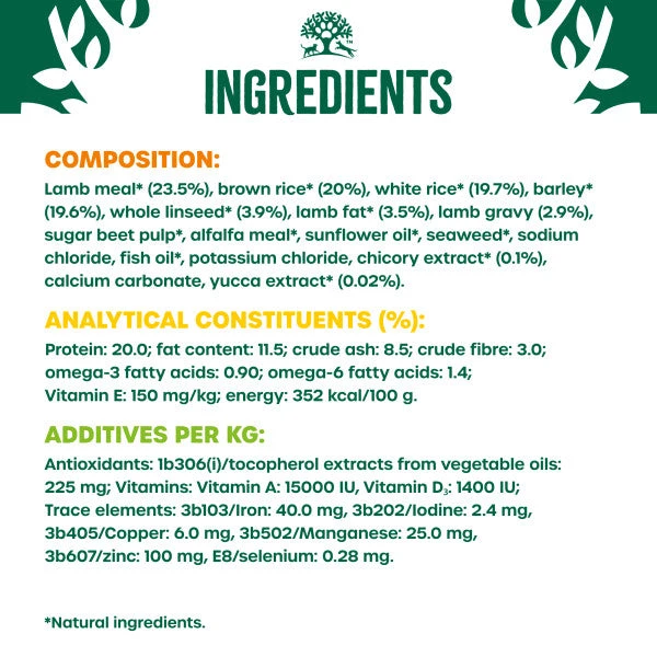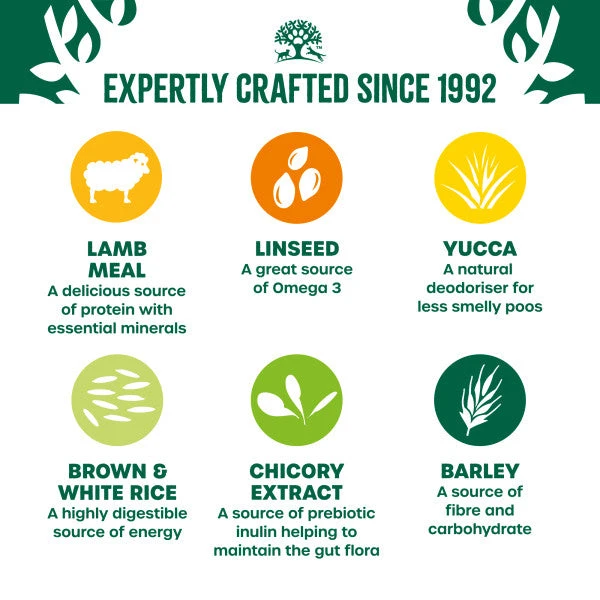 -The tasty lamb dog food is a crunchy meal that contains prebiotic and natural chicory inulin to maintain a healthy, happy gut flora;