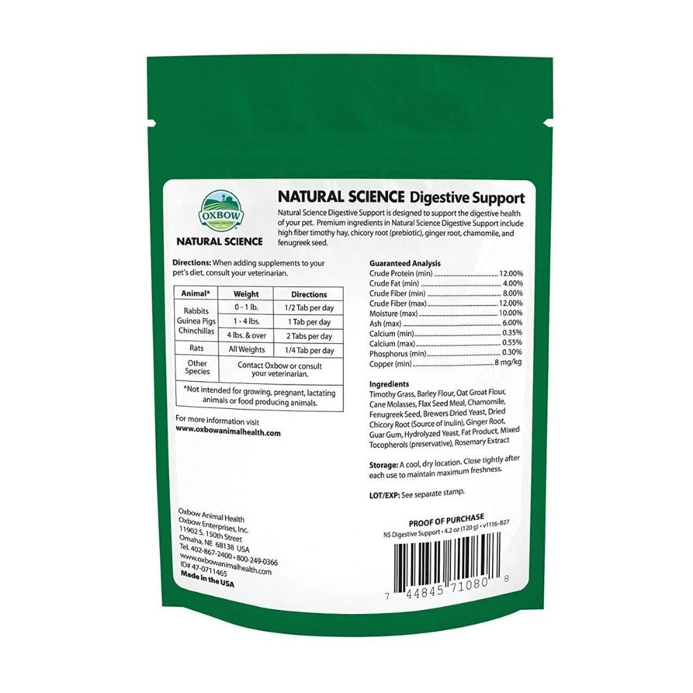 Natural Science Digestive Support contains high fiber Timothy hay and various herbal ingredients to support the digestive health of rabbits, guinea pigs, chinchillas, rats, and other small pets.