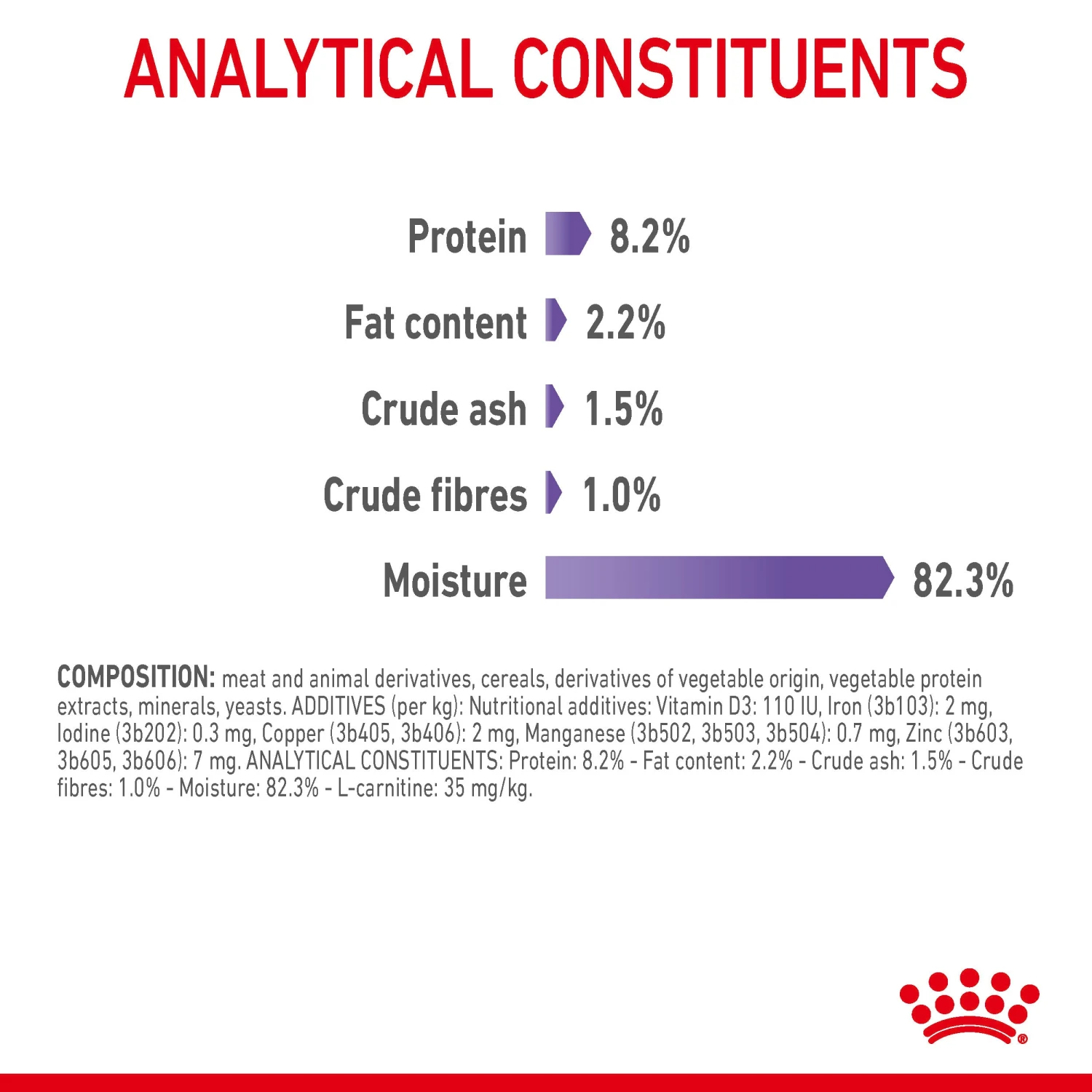 Once neutered, you may notice your cat begging for food in between mealtimes, or possibly gaining excess weight. With the right nutritional support, your cat’s hunger can be satisfied, and their optimal body weight can be maintained. ROYAL CANIN® Appetite Control Care in Gravy is a specially crafted diet for neutered adult cats that helps to control begging behaviour and helps to limit excess weight gain.