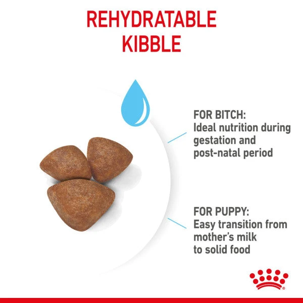 Newborn puppies have unique nutritional requirements to help support their developing senses and nervous systems. What’s more, feeding growing puppies is a strenuous task that can take its toll on your small dog’s metabolism. During the weaning period when the litter are transitioning to solid food, your dog and her nursing puppies need a tailored diet to meet their unique nutritional needs. ROYAL CANIN® Mini Starter Mother & Babydog is specially formulated to support the nutritional needs of new mothers and their puppies. This formula is suitable for small adult dogs that weigh up to 10 kg, and weaning puppies up to 2 months old. This tailored diet is specially adapted to meet your small dog’s high energy needs at the end of gestation and during lactation. It’s also formulated to support the healthy development of nursing puppies. This formula contains nutrients such as vitamins C and E to support natural defences. Thanks to a combination of beneficial prebiotics (such as MOS) and highly digestible proteins, ROYAL CANIN® Mini Starter Mother & Babydog also helps to support a healthy balance of intestinal microbiota (gut flora) for good digestion. This formula is enriched with omega-3 fatty acids (such as DHA) to help support healthy brain development in young puppies. The kibble in ROYAL CANIN® Mini Starter Mother & Babydog is easy to rehydrate with water, giving it an appetising porridge texture that’s ideal for weaning puppies. Did you know that a puppy’s nutritional needs change as they grow? In the short span of 8 weeks, your puppies will need a diet that’s specially adapted to meet their nutritional needs during the next growth phase. At this stage, you can transition them onto ROYAL CANIN® Mini Puppy, available either as a dry kibble diet or with wet chunks in gravy. At Royal Canin, we’re committed to creating a better world for cats and dogs. For more than 50 years, we’ve worked closely with breeders, vets, and pet experts, sharing specialist knowledge and scientific research to create a dedicated approach to individualised, precise nutritional solutions. All of our products undergo an extensive quality control process to guarantee the optimal quality of food. When your small dog and her puppies eat ROYAL CANIN® Mini Starter Mother & Babydog, they’re getting a complete and balanced diet.