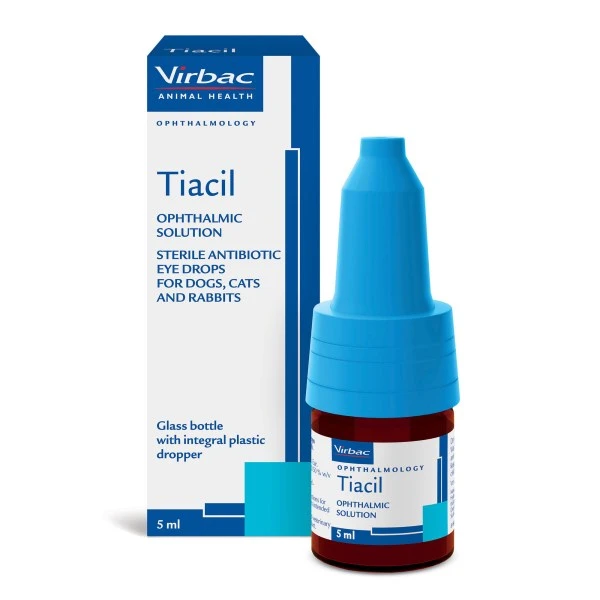 Tiacil Ophthalmic Solution is a gentamicin based eye drop solution used for the treatment of eye infections in dogs, cats and rabbits.